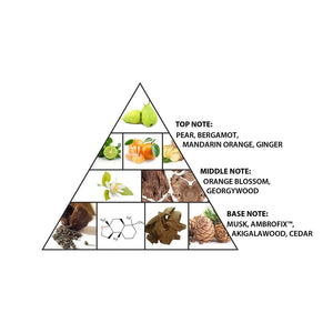 The fragrance opens with a bright and refreshing blend of pear, bergamot, and ginger, creating a fresh yet gently spicy introduction. As it evolves, the heart blooms with delicate orange blossom, wrapped in smooth woody tones that add balance and modern elegance.