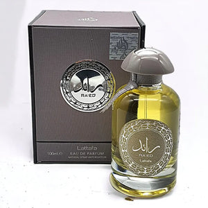 Perfume Ra'ed Silver Eau de Parfum by Lattafa Perfumes is an oriental, spicy fragrance for women and men. Ra'ed begins with top notes of mandarin oranges, citrus and spices. Saffron, cinnamon and cloves add a beautiful spiciness to the heart notes, while amber adds warmth and depth. The base is wonderfully woody with Oudh complemented by leather notes, ambergris, vanilla and musk. Ra'ed is a distinctly elegant perfume with an oriental appeal that is very suitable for any occasion. Main accords: fruity, warm spicy, musky, woody, powdery.
